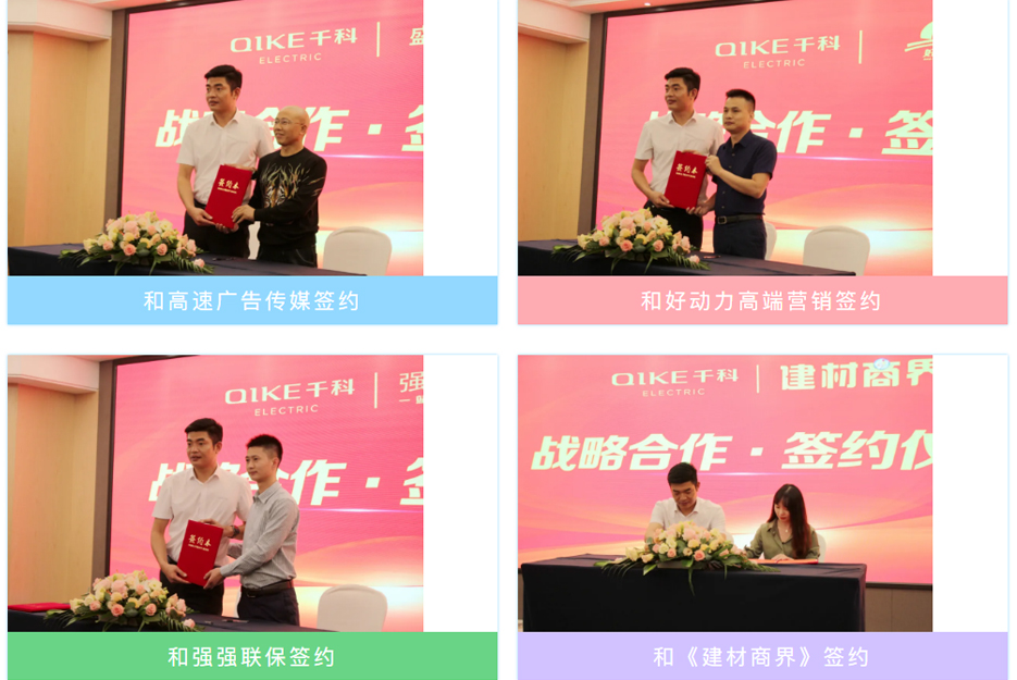 會議上,千科與高速廣告傳媒、好動力高端營銷、強強聯保、《建材商界》等企業達成深度戰略合作,并現場簽訂戰略合作協議。未來,千科將借助各媒體的不同優勢,為經銷商們的發展賦能、助力。